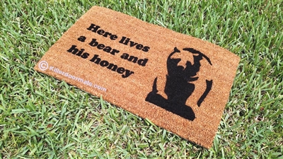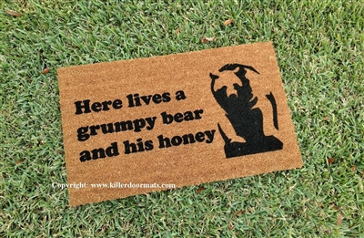 Here Lives A Grumpy/Not Grumpy Bear And His Honey Funny Custom Handpainted Welcome Mat by Killer Doormats